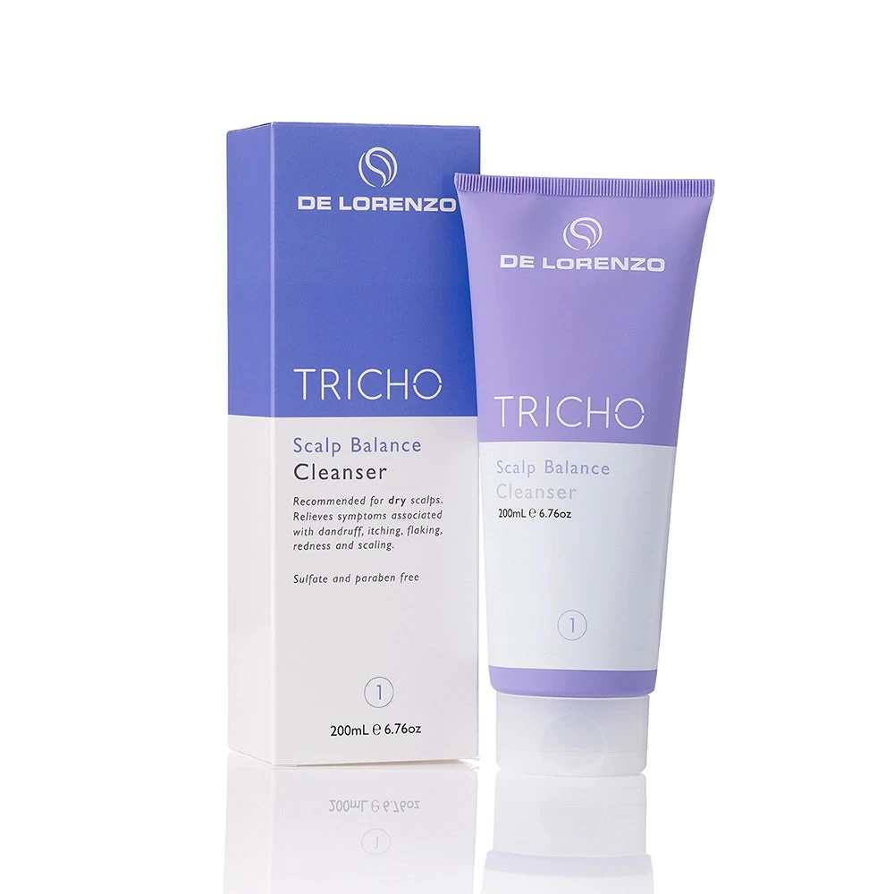 De Lorenzo Tricho Series Scalp Balance Cleanser 200ml is formulated to relieve symptoms of the scalp associated with dandruff, itching, flaking, redness and scaling where the scalp is dry. Gently cleanses the scalp without stripping the hair of its natural oils. Enriched with vitamins, it will gently nourish a sensitised, dry scalp and hair. Contains Ziziphus Joazeiro bark extract, a natural active that removes flake, gently cleanses, soothes and provides anti-itch activity. Sulfate and paraben free.