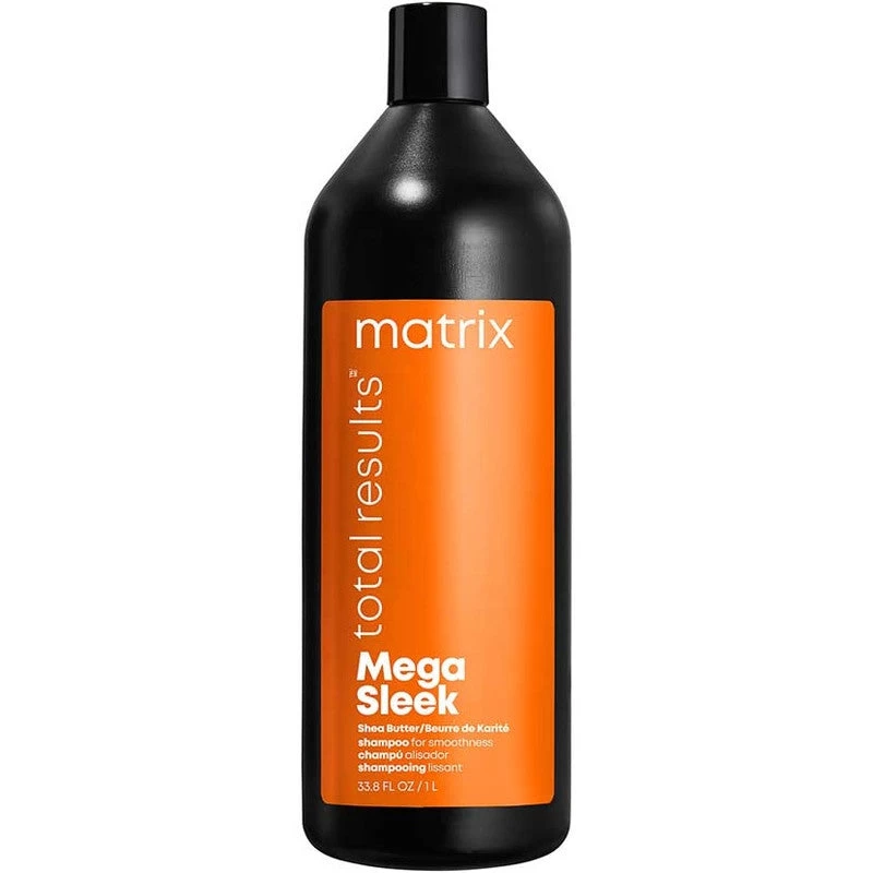 - Mega Sleek Shampoo with smoothing shea butter helps control rebellious, unruly hair and manages frizz against humidity for smoothness.